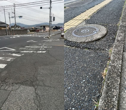 センターラインや路側線が消えかかっている道路,陥没したままや凸凹のままの道路が多いと思うがどうか。